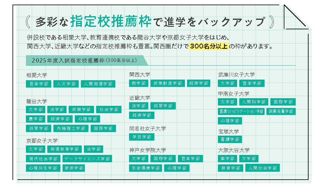 多彩な学校推薦型選抜(指定校推薦)枠で進学をバックアップ。