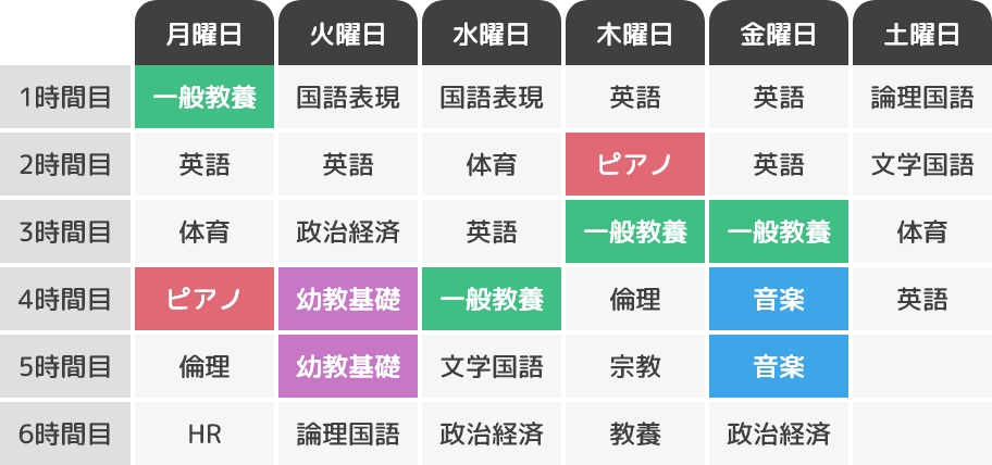 各選択群(A~D群)から自分に必要な科目を1科目ずつ履修して、“ジブン”だけの時間割に。