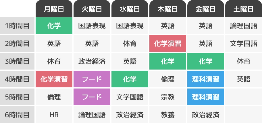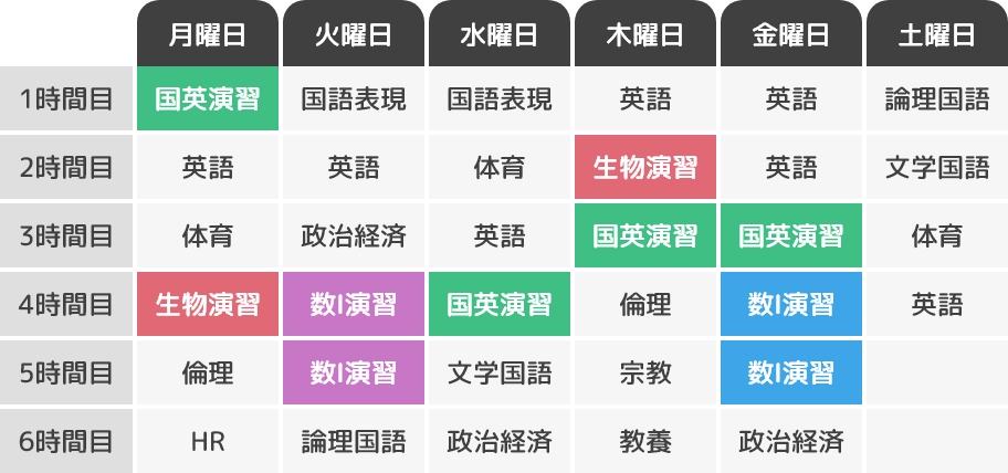 多彩な進路に対応する7つの専攻。約30種類の選択科目の中から興味のある科目を選び、自分だけの時間割で効率よく学習を進めます。