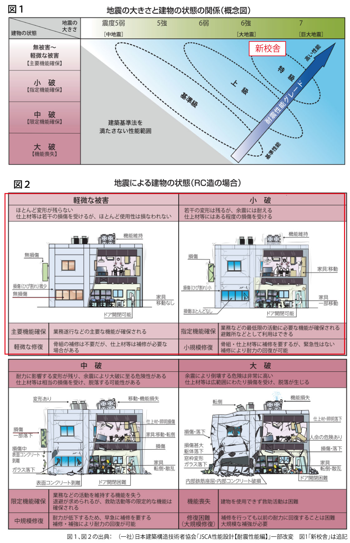最新の免震機能を備えた新校舎は今後想定される南海トラフ地震や上町断層地震のような大地震の際も被害を最小限にとどめます。