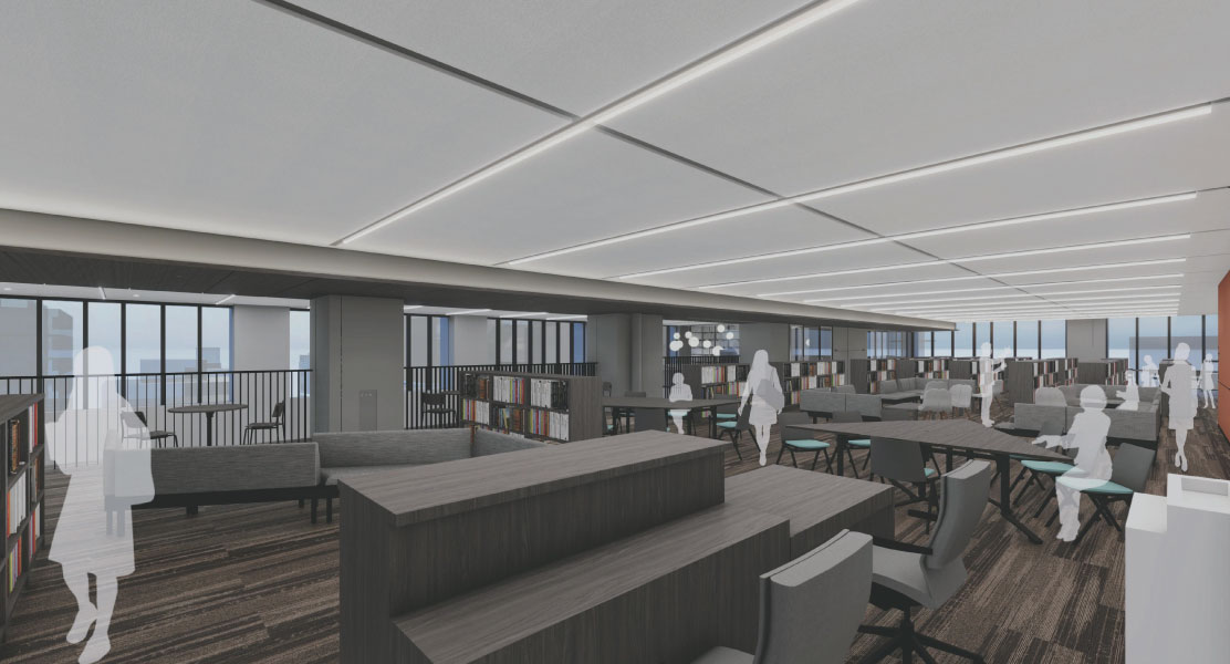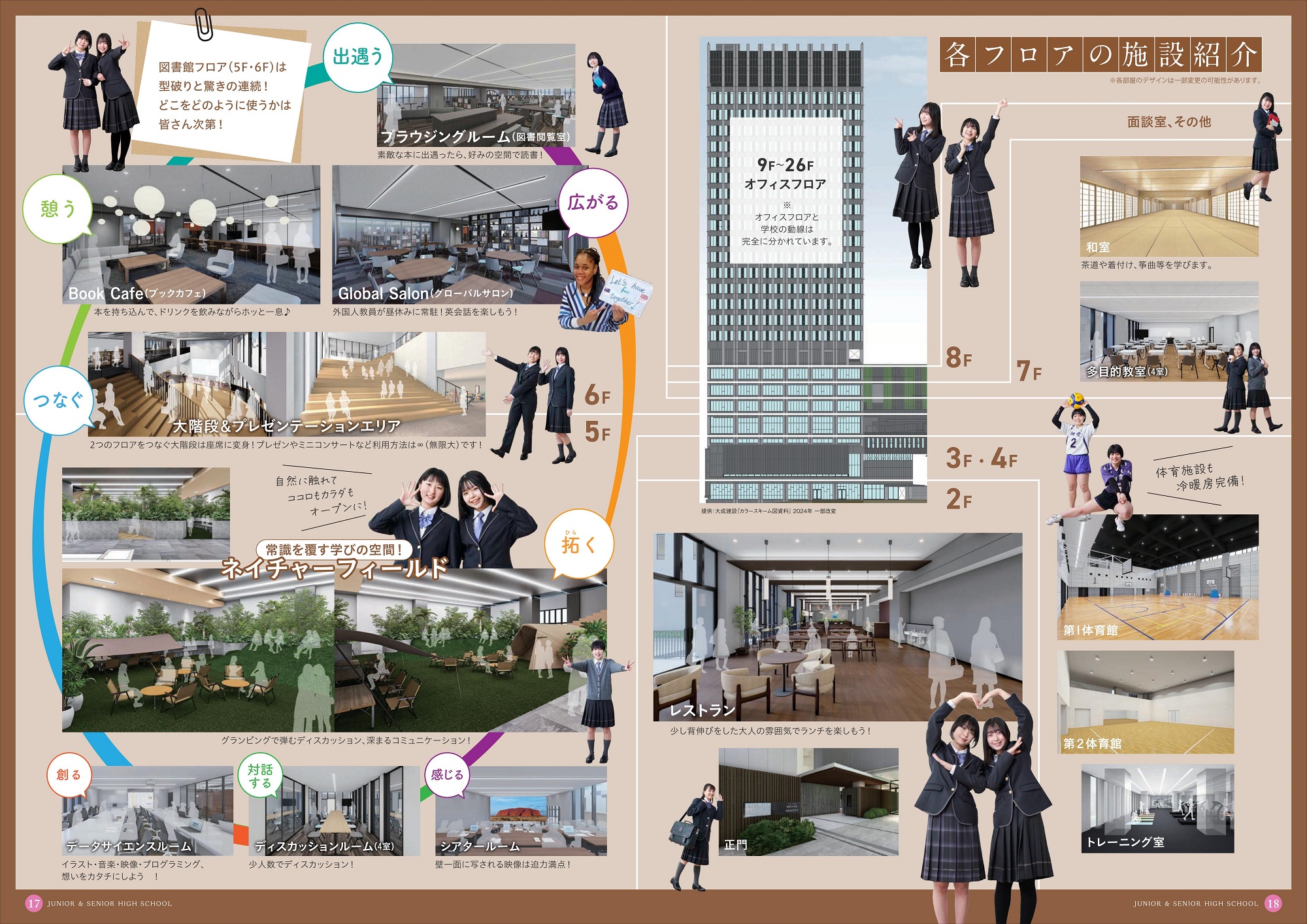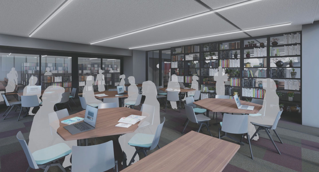 驚きの「ネイチャーフィールド」や、ジュースなど飲食OKな「ブックカフェ」、外国人教員が昼休みに常駐して英会話をエンジョイする「グローバルサロン」など、5階と6階の図書館フロアは常識を覆す空間ばかり!