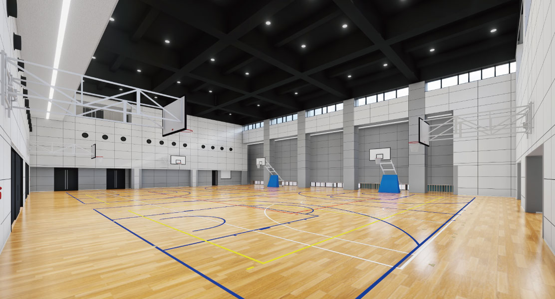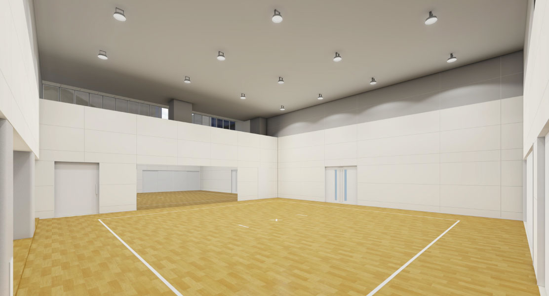 体育施設は冷暖房完備。第1体育館は天井までの高さが10メートルあり、様々な競技が可能です。
