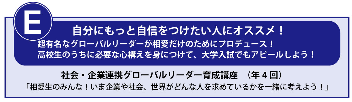 超有名なグローバルリーダーが相愛だけのためにプロデュース!高校生のうちに必要な心構えを身につけて、大学入試でもアピールしよう!