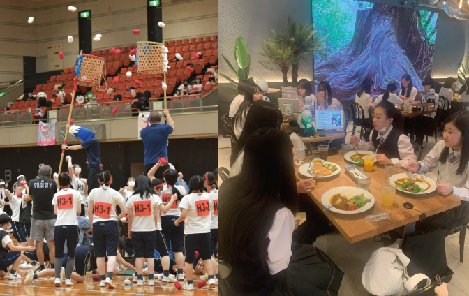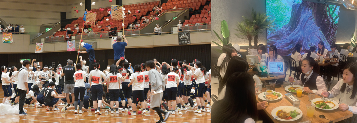 体育祭は、エディオンアリーナ大阪で行います。高校3年生の学年種目のクラスダンスは必見です!文化祭では、中学・高校の各クラスが多彩な催しを行い、来校される方をおもてなしします!生徒会が作り上げる階段アートが皆さんをお出迎えします。