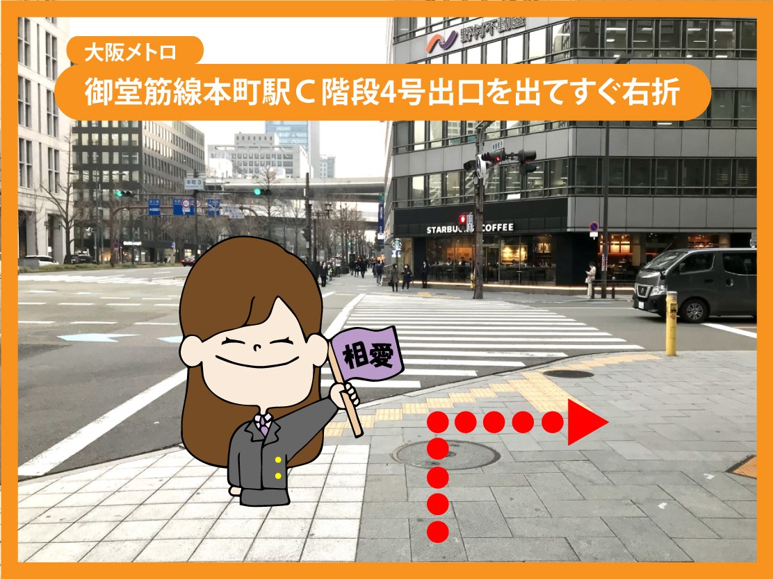 大阪メトロ御堂筋線「本町」駅下車C階段4号出口すぐ。とても便利で、かつ安全です。 「なんば」駅より4分、「梅田」駅より5分、「天王寺」駅より11分、大阪の中心にあります。
