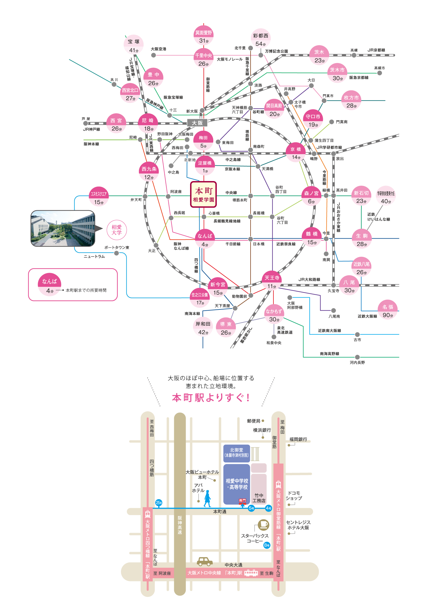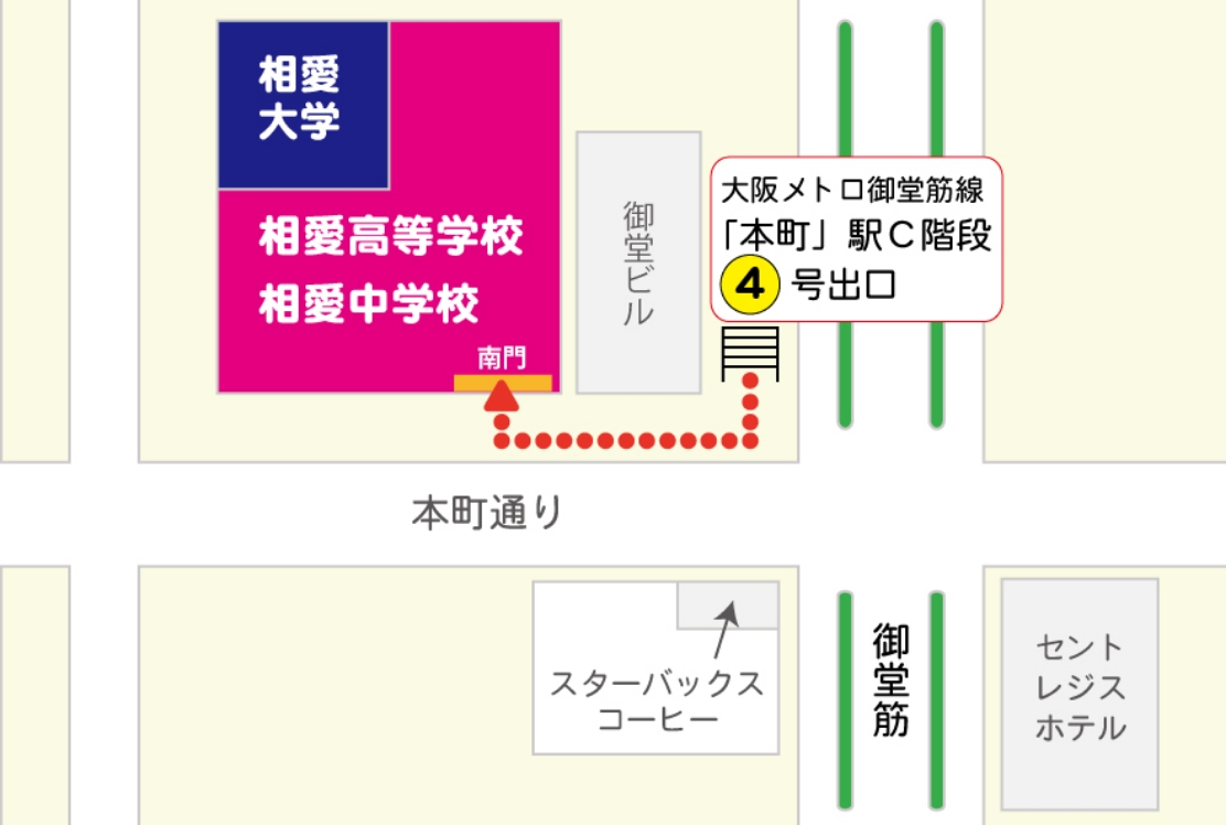 大阪メトロ御堂筋線「本町駅」からすぐで、快適・安全に登下校できます。