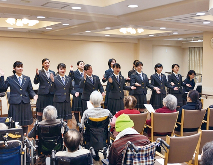 高校 音楽科 平和学習と国際交流 SDGs平和教育推進の一環でチェコ「ボニ・プエリ合唱団」と交流演奏会を開催。合唱団の皆さんに『日々の糧英語版』を提供し、建学の精神による「自利利他」と「共生」と、世の中の安穏を願う心をグローバルに普及することに努めました。「交流演奏会」の詳細はこちら 「『日々の糧英語版』提供」の詳細はこちら |